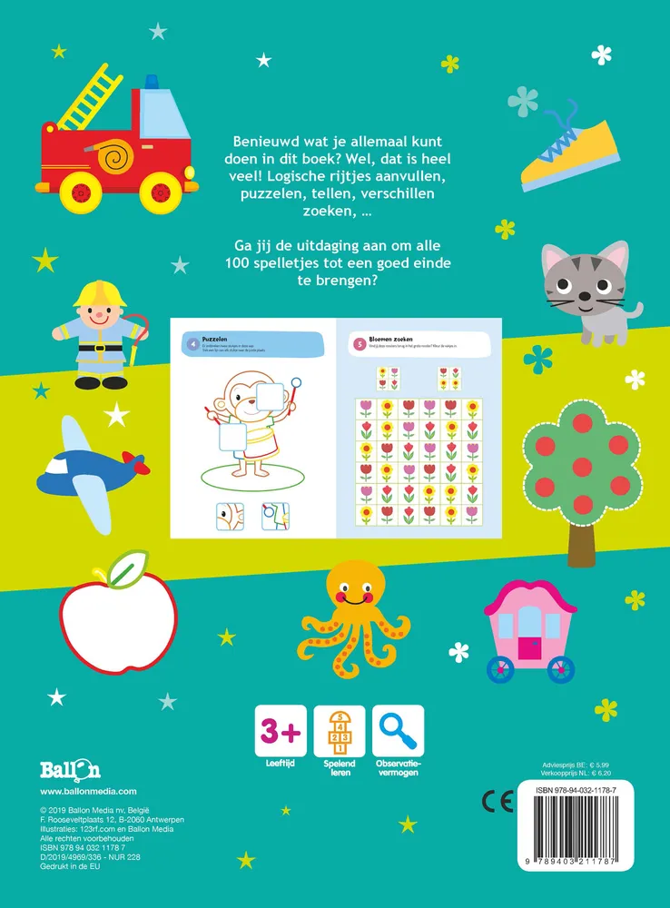 Ontdek ook de andere titels in de reeks ‘100 spelletjes’. In elk boek staan maar liefst 100 spelletjes waarvan de moeilijkheidsgraad is aangepast aan de leeftijd van het kind. Goed voor uren speelplezier! Leerzaam én fun tegelijkertijd.