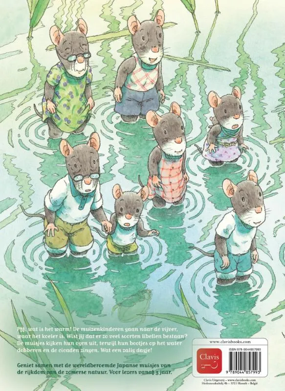 Pff, wat is het warm! ‘Zullen we naar de libellenvijver gaan?’ stelt Nestor voor aan zijn broertjes en zusjes. Dat doen ze. Bij het water is het koeler en er zijn heel veel dieren. Wist jij dat er zoveel soorten libellen bestaan? De muizenkinderen kijken hun ogen uit, terwijl hun bootjes op het water dobberen en de cicaden luid zingen. Wat een zalig dagje!