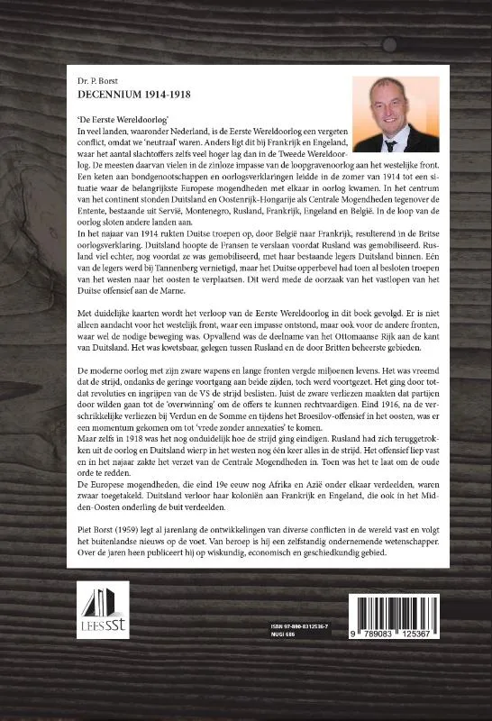 In dit deel van de Decennium Serie wordt met duidelijke kaarten het verloop van de Eerste Wereldoorlog gevolgd. Er is niet alleen aandacht voor het westelijk front – waar een impasse ontstond -, maar ook voor de andere fronten – waar wel de nodige beweging was.