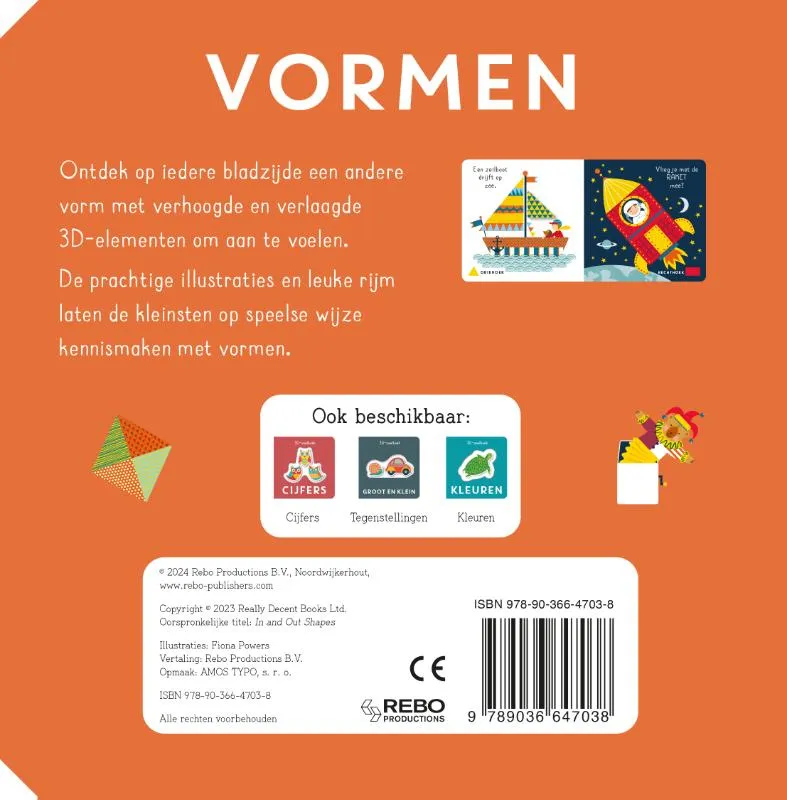 Prachtig geïllustreerd leer- en speelboek, met verhoogde en verlaagde 3D-elementen waarmee kinderen kennismaken met vormen.