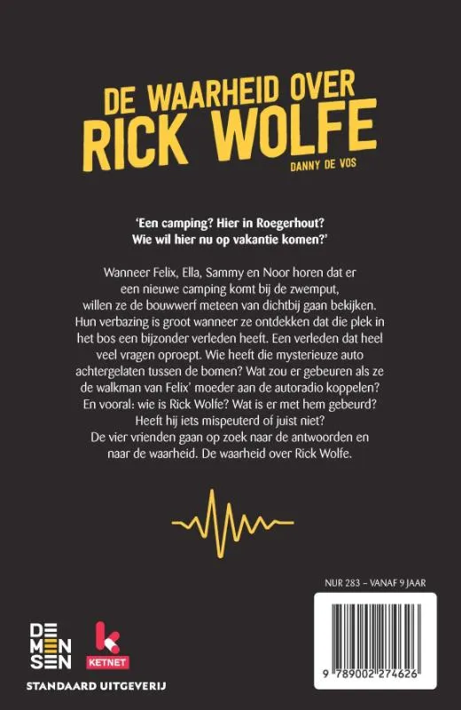 Wanneer Felix, Ella, Sammy en Noor horen dat er een nieuwe camping komt bij de zwemput, willen ze de bouwwerf meteen van dichtbij gaan bekijken. Hun verbazing is groot wanneer ze ontdekken dat die plek in het bos een bijzonder verleden heeft. Een verleden dat heel veel vragen oproept. Wie heeft die mysterieuze auto achtergelaten tussen de bomen? Wat zou er gebeuren als ze de walkman van Felix’ moeder aan de autoradio koppelen? En vooral: wie is Rick Wolfe? Wat is er met hem gebeurd? Heeft hij iets mispeuterd of juist niet? De vier vrienden gaan op zoek naar de antwoorden en naar de waarheid. De waarheid over Rick Wolfe.