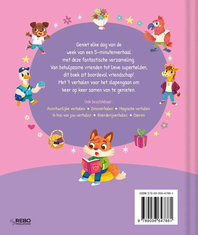 Geniet elke dag van de week van een 5-minutenverhaal met deze fantastische verzameling. Van behulpzame vrienden tot lieve superhelden, dit boek zit boordevol vriendschap. Met 7 verhaaltjes voor het slapengaan om keer op keer samen te lezen.