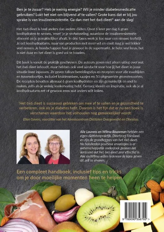 ‘Het 6×6 dieet is succesvol gebleken om mee af te vallen en je gezondheid te verbeteren, ook als je diabetes hebt. Daarom is het fijn dat er nu een boek is verschenen waardoor het volhouden nog gemakkelijker wordt.’ (dit zegt Ellen Govers, voorzitter van het Kenniscentrum Diëtisten Overgewicht en Obesitas) <br><br>