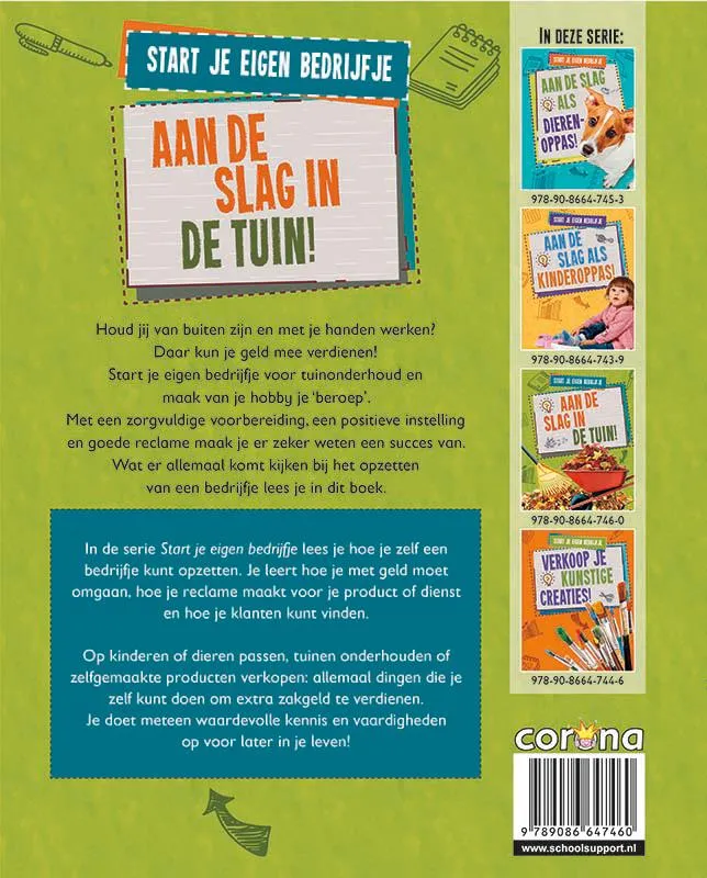 In de serie Start je eigen bedrijfje lees je hoe je zelf een bedrijfje kunt opzetten. Je leert hoe je met geld moet omgaan, hoe je reclame maakt voor je product of dienst en hoe je klanten kunt vinden.
