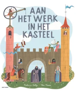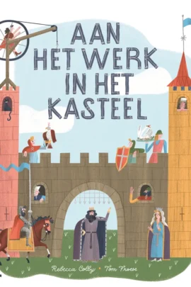 ‘Aan het werk in het kasteel’ is een vrolijk prentenboek over de middeleeuwen waarin je van alles leert over belangrijke beroepen uit die tijd, van Rebecca Colby en Tom Froese. De vertaling, heerlijk op rijm, is van Bette Westera. Wie werken er eigenlijk allemaal in het kasteel van de koning? Nou… het is best veel werk, voordat zo’n kasteel er eenmaal staat.