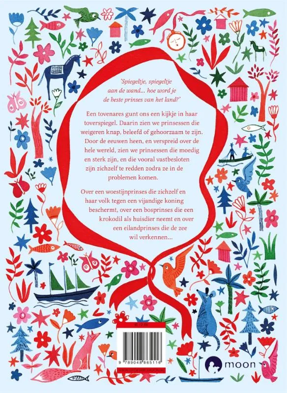 ‘Spiegeltje, spiegeltje aan de wand… hoe word je de beste prinses van het land?'<br>Een tovenares gunt ons een kijkje in haar toverspiegel. Daarin zijn prinsessen te zien die weigeren knap, beleefd of gehoorzaam te zijn. Door de eeuwen heen, en verspreid over de hele wereld, zien we prinsessen die moedig en sterk zijn, en die vooral vastbesloten zijn zichzelf te redden als ze in de problemen komen.<br><br>Over een woestijnprinses die zichzelf en haar volk tegen de vijandige koning met de zwart-gouden vlag beschermt, over een bosprinses die een krokodil als huisdier neemt, over een eilandprinses die de zeven zeeën verkent. Over een bergprinses die aardig zijn belangrijker vindt dan koninklijk zijn. En over Prinses, die haar buurttuin moet zien te redden uit handen van projectontwikkelaars.