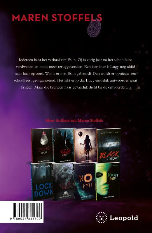 Iedereen kent het verhaal van Eslin. Zij is vorig jaar na het schoolfeest verdwenen en nooit meer teruggevonden. Een jaar later is Lucy nog altijd naar haar op zoek. Wat is er met Eslin gebeurd? Dan wordt er opnieuw een schoolfeest georganiseerd. Het lijkt erop dat Lucy eindelijk antwoorden gaat krijgen. Maar die brengen haar gevaarlijk dicht bij de ontvoerder…