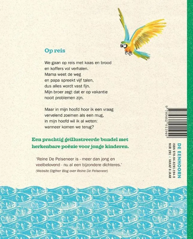 Reine De Pelseneer schreef al drie poëziebundels voor volwassenen. In deze bundel verzamelt ze haar nieuwe gedichten voor kinderen. De gedichten over vriendschap, familie en fantasie sluiten stuk voor stuk aan bij de leefwereld van jonge kinderen. Dat maakt dit boek onmisbaar in elke klas van het basisonderwijs.