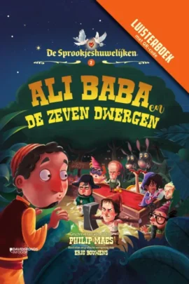 Wat krijg je als je twee sprookjes met elkaar laat trouwen? Juist ja, een sprookjeshuwelijk!Zoals dit bijzondere verhaal over de arme houthakker Ali Baba, die een fabelachtige schat ontdekt. Een berg diamanten, goud en juwelen, verborgen in een geheime grot. En gestolen door 40 rovers (39 eigenlijk…) en hun baas, Opperslechterik Fluffy (als baby was hij schattig, daarom heet hij zo).De diamanten hebben ze afgepakt van zeven lieve dwergen: Vito, Cruise, Ben, Napoleon, Ciro, Elton en Prince. Wanneer Ali Baba hoort dat Sneeuw-wiewietje, het arme schaapje, voor dood in hun kabouterhuis ligt, besluit hij hen te helpen.Maar dat laten die rovers natuurlijk niet zonder slag of stoot gebeuren. Wanneer ze horen dat Ali Baba hun schat in een geheime kist heeft verborgen, bedenken ze een list. Hoe dat afloopt, lees én hoor je in dit tweede verhaal uit de formidabele reeks De Sprookjeshuwelijken.