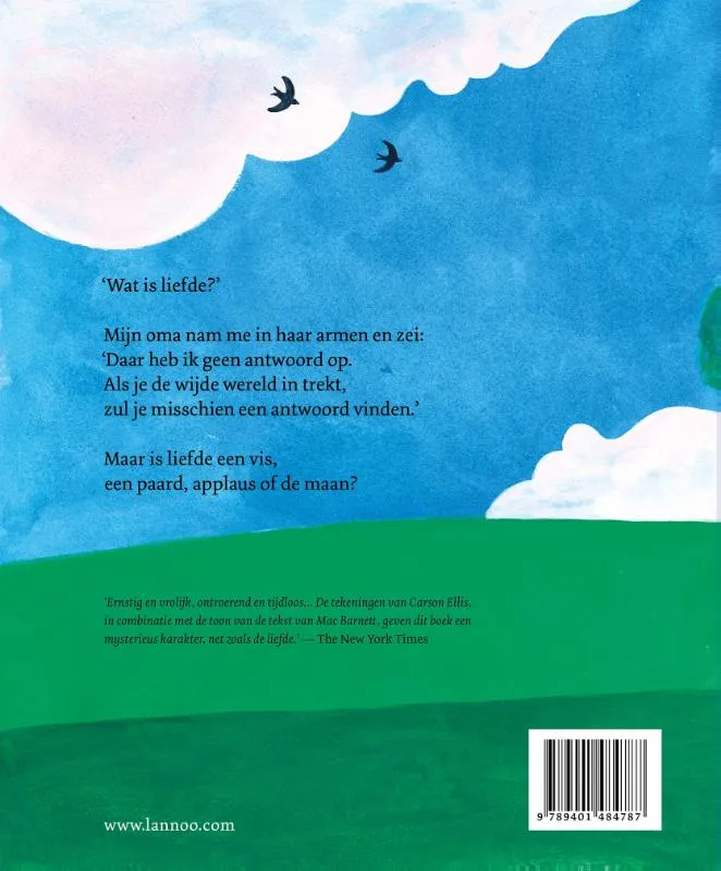 ‘Ernstig en vrolijk, ontroerend en tijdloos… De tekeningen van Carson Ellis in combinatie met de toon van de tekst van Mac Barnett geven dit boek een mysterieus karakter, net zoals de liefde.‘ – The New York Times.