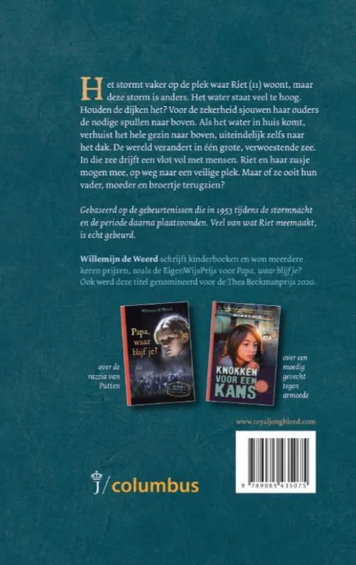 Het stormt vaker op de plek waar Riet (11) woont, maar deze storm is anders. Zelfs haar vader maakt zich zorgen. Eerst worden er spullen naar boven gesjouwd. Daarna verhuizen Riet en haar familie ook naar boven. Uiteindelijk van de zolder zelfs naar het dak.