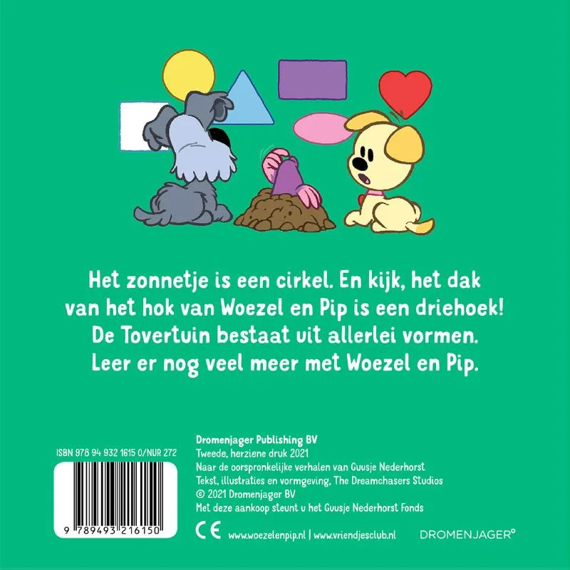 Het zonnetje is een cirkel. En kijk, het dak van het hok van Woezel en Pip is een driehoek!