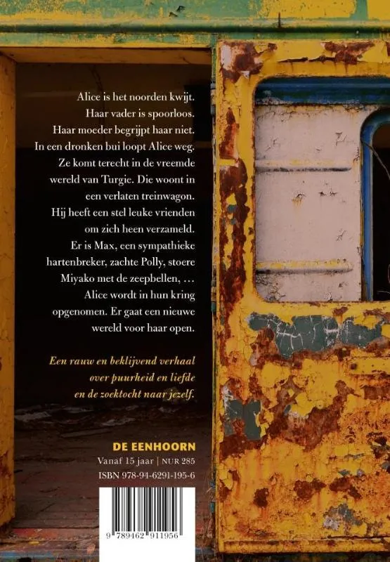 Alice is het noorden kwijt. Haar vader is spoorloos. Haar moeder begrijpt haar niet. In een dronken bui loopt Alice weg. Ze komt terecht in de vreemde wereld van Turgie. Die woont in een verlaten treinwagon. Hij heeft een stel leuke vrienden om zich heen verzameld. Er is Max, een ondeugende hartenbreker, zachte Polly en stoere Miyako met de zeepbellen. Alice wordt in hun kring opgenomen. Er gaat een nieuwe wereld voor haar open.