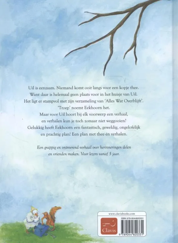 Uil is een beetje eenzaam. Hij zou zo graag willen dat andere dieren bij hem op bezoek kwamen voor een kopje thee. Zijn woning puilt uit van de spulletjes. Je kunt er gewoon niet in, vindt Eekhoorn. Er moet dus dringend opgeruimd worden. Maar Uil is zo gehecht aan al zijn spulletjes. Elk dingetje bevat wel een verhaal. Alles wat eekhoorn eruit gooit, haalt hij weer naar binnen. Dan heeft Eekhoorn een idee: ze maken er een verhalenmuseum van! Alle spulletjes worden netjes getoond. Alle dieren worden uitgenodigd en Uil gaat vertellen, bij elk voorwerp een verhaal.