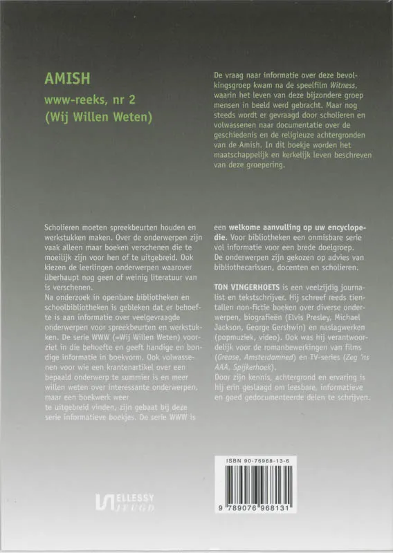 De vraag naar informatie over deze bevolkingsgroep kwam na de speelfilm Witness, waarin het leven van deze bijzondere groep mensen in beeld werd gebracht, Maar nog steeds wordt er gevraagd door scholieren en volwassenen naar documentatie over de geschiedenis en de religieuze achtergronden van de Amish. In dit boekje worden het maatschappelijk en kerkelijk leven beschreven van deze groepering.
