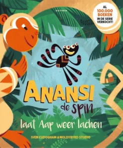 In het zesde deel in de succesvolle Anansi-serie, ‘Anansi de spin laat Aap weer lachen’, zet Aap de boel op stelten met haar ondeugende streken. Eerst is Haan aan de beurt, daarna krijgt Olifant de volle laag en ook Konijn krijgt het voor haar kiezen. Dat hadden ze niet verwacht van hun vriendin! Wanneer Aap ook nog Schildpad lastigvalt, beginnen de dieren in het woud te vermoeden dat er meer aan de hand is. Heeft Aap last van een plaaggeest? Of hebben ze Aap zelf te vaak geplaagd?<br><br>Otter onthult dat hij Aap kletsnat heeft gespetterd, terwijl Olifant bekent dat hij haar vaak een domme aap noemt. Gelukkig komt Anansi met een slim plan: ze gaan Aap helpen van haar plaaggeest af te komen en haar weer oprecht laten lachen.<br><br>Iven Cudogham en zijn beroemde Anansi de spin zijn tegenwoordig overal te vinden: van televisie tot theater, van bioscoop tot boekenplank. De vrolijke en levendige verhalen over de spin Anansi zijn een hit. De prentenboeken zijn gebaseerd op de klassieke verhalen uit West-Afrika, Suriname en de Caraïben, die inmiddels over de hele wereld bekend zijn.<br>Met het eerste boek in de serie, ‘Anansi de spin en de gulzige tijger’, hebben Iven Cudogham en Moldybyrd Studio al laten zien dat ze vrolijke en kleurrijke prentenboeken kunnen maken. Ook ‘Anansi de spin laat Aap weer lachen’ is weer een kleurrijk feestje. Geschikt voor jonge lezers vanaf 4 jaar oud.