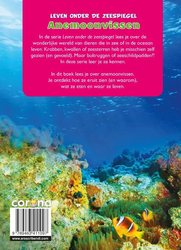 In dit boek lees je over anemoonvissen. Je ontdekt hoe ze eruit zien (en waarom), wat ze eten en waar ze leven.