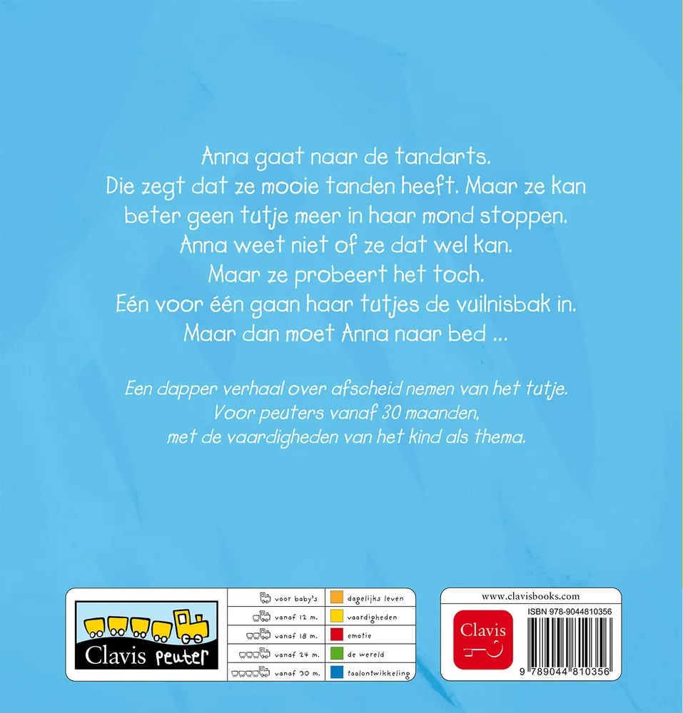 Een voor een gaan haar tutjes de vuilnisbak in.