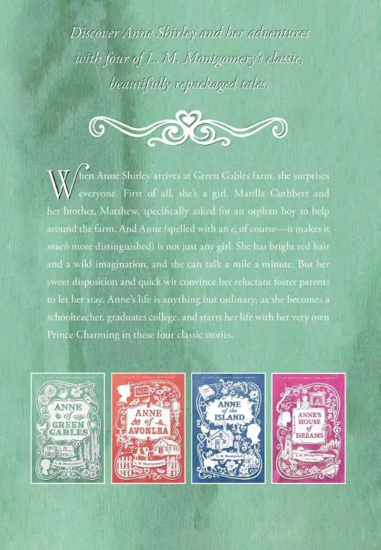 Treasure the imaginative world of Anne Shirley with the first four re-packaged books in the Anne of Green Gables series, now available as a boxed set.