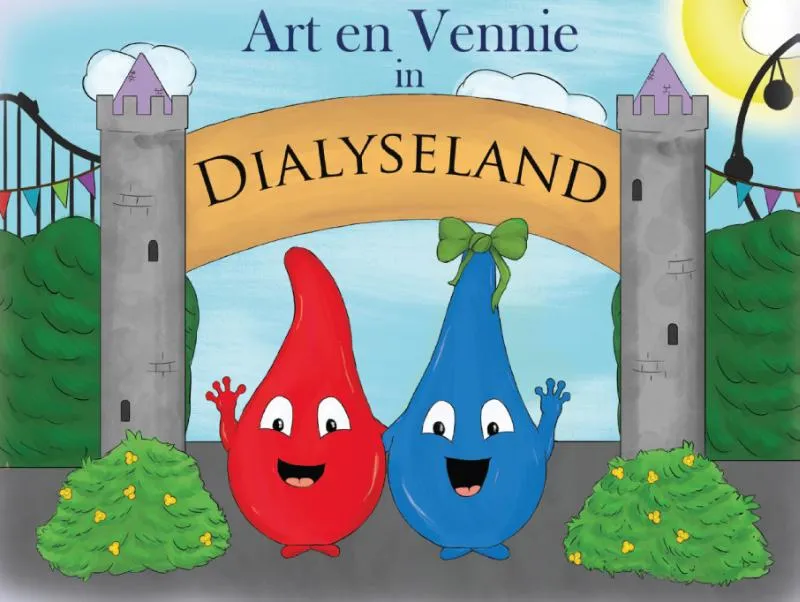 Art en Vennie in dialyseland is een kleurrijk boek. Op kinderlijke wijze wordt uitleg gegeven over het basisprincipe van hemodialyse en buikdialyse.
