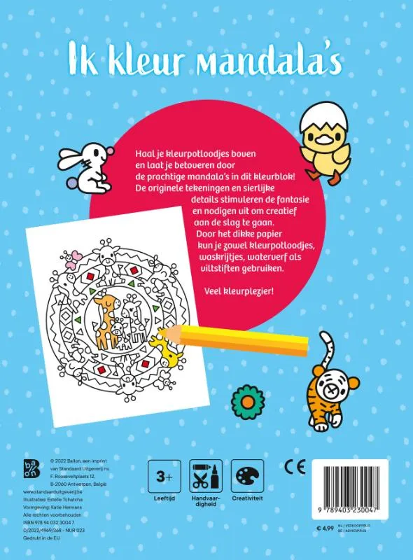 Haal je kleurpotloodjes boven en laat je betoveren door de prachtige mandala’s vol babydieren in dit kleurblok! De originele tekeningen stimuleren de fantasie en nodigen uit om creatief aan de slag te gaan. Door gebruik van dik papier kunnen kleurpotloodjes, waskrijtjes, waterverf of viltstiften gebruikt worden.