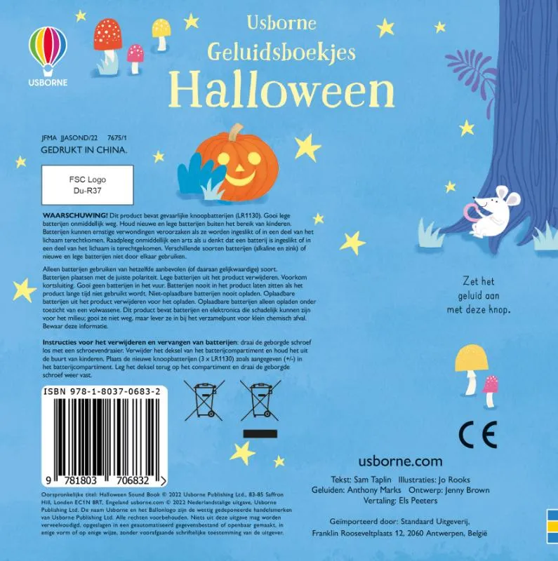 Met op elke spread een knop die een grappig-eng geluid laat horen als je erop drukt.
