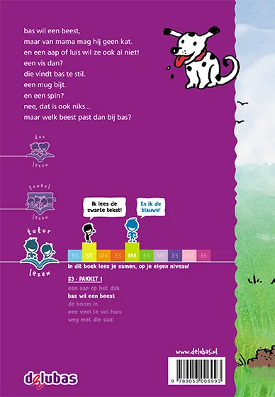 Bas wil een beest is een van de vijf boeken uit het S3 pakket 1 tutorlezen van Uitgeverij Delubas, speciaal ontwikkeld voor tutorlezen, met S3 als leesniveau voor de beginnende of zwakkere lezer.
