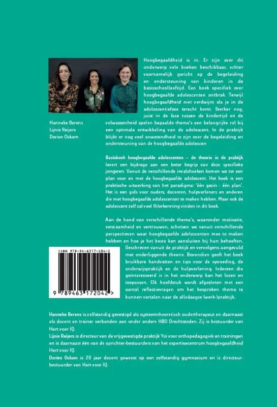 In de praktijk blijkt er nog veel onwetendheid te zijn over de begeleiding en ondersteuning van de hoogbegaafde adolescen Basisboek hoogbegaafde adolescenten – de theorie in de praktijk levert een bijdrage aan een beter begrip van deze specifieke jongeren. Vanuit de verschillende invalshoeken komen we tot een plan voor en met de hoogbegaafde adolescent.