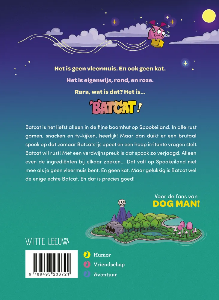 Batcat is het liefst alleen in de fijne boomhut op Spookeiland. In alle rust gamen, snacken en tv-kijken, heerlijk! Maar dan duikt er een brutaal spook op dat zomaar Batcats ijs opeet en een hoop irritante vragen stelt. Batcat wil rust! Met een verdwijnspreuk is dat spook zo verjaagd. Alleen even de ingrediënten bij elkaar zoeken… Dat valt op Spookeiland niet