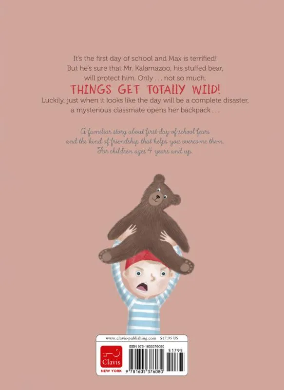 Max is bang om naar school te gaan. Daarom neemt hij zijn knuffelbeer mee. Maar de beer zet de klas op stelten. Net, als het volledig dreigt mis te gaan, doet klasgenootje Madi haar rugzak open! Prentenboek in smal, staand formaat met pastelkleurige illustraties. Vanaf ca. 4 jaar.