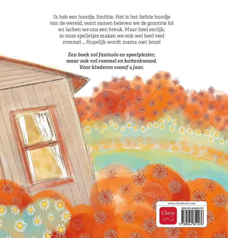 Ik heb een hondje, Smittie. Het is het liefste hondje van de wereld, want samen beleven we de grootste lol en lachen we ons een breuk. Maar heel eerlijk: in onze spelletjes maken we ook wel heel veel rommel … Hopelijk wordt mama niet boos!