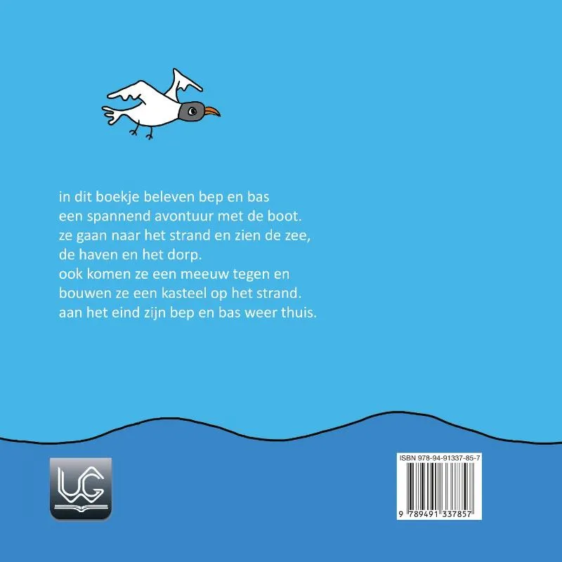 in dit boekje beleven bep en bas een spannend avontuur met de boot. ze gaan naar het strand en zien de zee, de haven en het dorp. ook komen ze een meeuw tegen en bouwen ze een kasteel op het strand. aan het eind zijn bep en bas weer thuis.