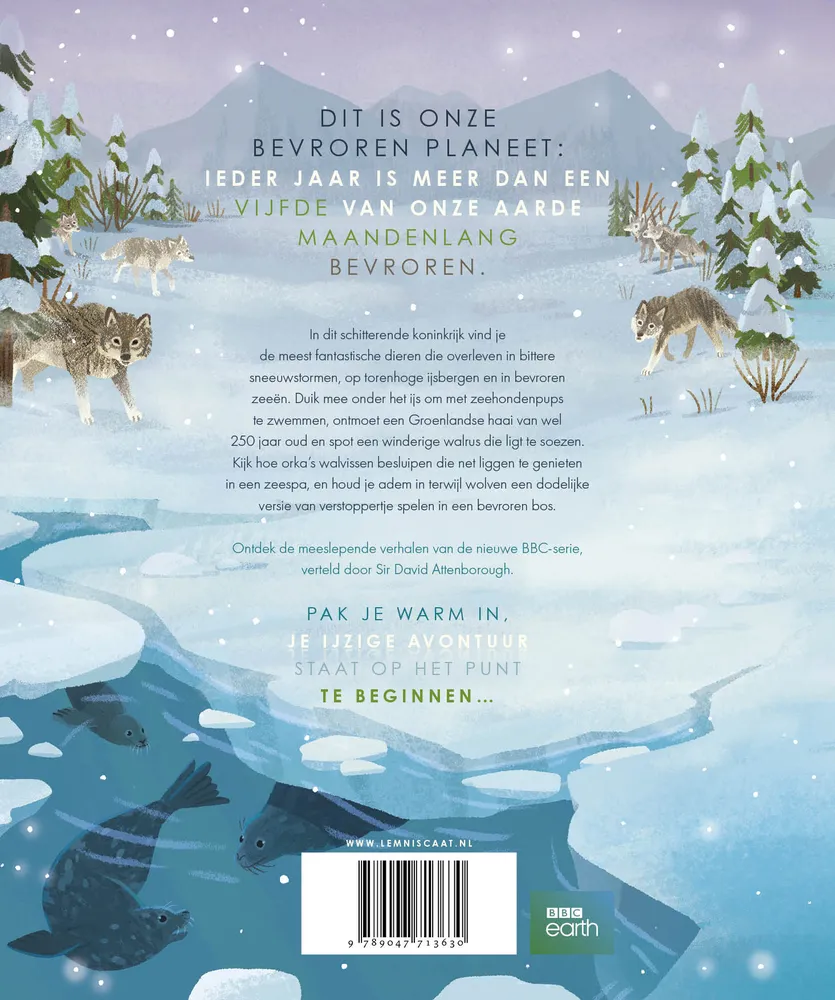 Sir David Attenborough neemt je mee op een tocht door onze bevroren planeet. Duik onder het ijsplafond en leer zwemmen met zeehondenjongen, kies het luchtruim met ijskoude flamingo’s en nestel je tussen de winderige walrussen om even uit te rusten.