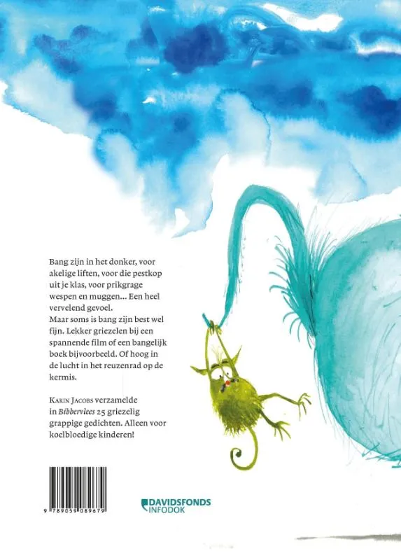 Bang zijn in het donker, voor akelige liften, voor die pestkop uit je klas, voor prikgrage wespen en muggen… Een heel vervelend gevoel.Maar soms is bang zijn best wel fijn. Lekker griezelen bij een spannende film of een bangelijk boek bijvoorbeeld. Of hoog in de lucht in het reuzenrad op de kermis.