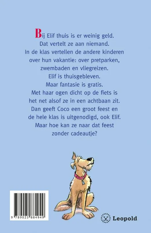 Bij Elif thuis is er weinig geld. Dat vertelt ze aan niemand. Op school vertellen de andere kinderen over hun vakantie: over pretparken, zwembaden en vliegreizen. Elif is thuisgebleven. Maar fantasie is gratis. Met haar ogen dicht op de fiets is het net alsof ze in een achtbaan zit. Dan geeft Coco een groot feest en de hele klas is uitgenodigd, ook Elif. Maar hoe kan ze naar dat feest zonder cadeautje?