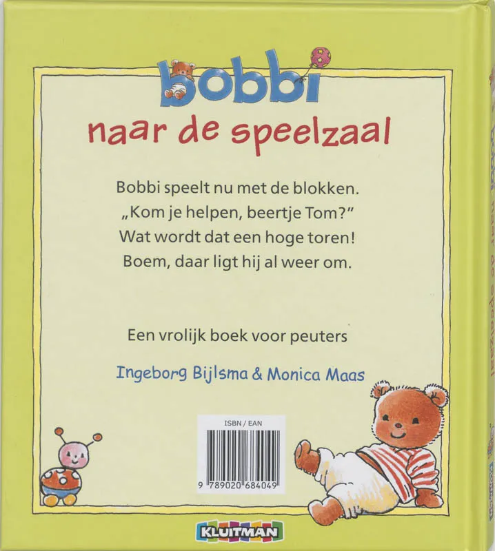 Beertje Bobbi gaat naar de peuterspeelzaal. Hij hangt zijn jas op, zwaait naar mama en gaat fijn spelen: verven, met de blokken spelen en zijn vriendjes voorlezen uit een plaatjesboek. En na het drinken mogen ze buiten spelen! Prentenboek met zachtgekleurde tekeningen en tekst op rijm. Vanaf ca. 2 jaar.