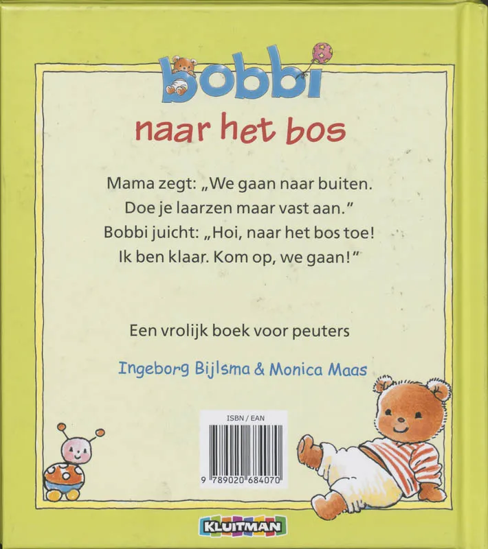 Het is herfst en Beertje Bobbi gaat met mama naar het bos. Hij mag fijn door de bladeren schoppen en verstopt zich achter de boomstammen. En Bobbi verzamelt heel veel mooie bladeren en beukennootjes. Prentenboek met zachtgekleurde tekeningen en tekst op rijm. Vanaf ca. 3 jaar.