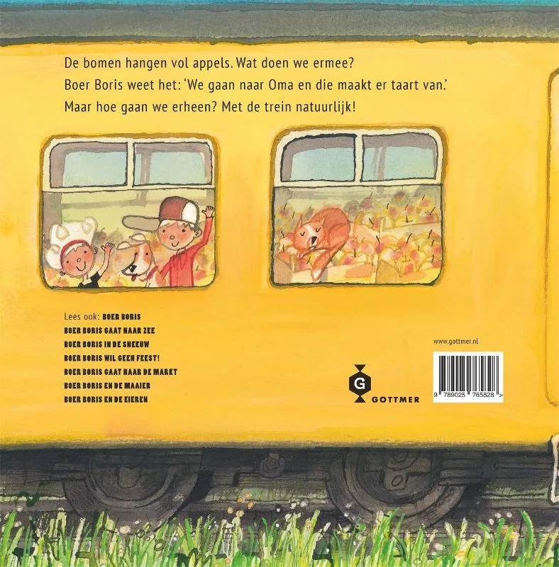 In ‘Boer Boris gaat naar Oma’ heeft Boris met zijn zusje Sam en broertje Berend een hele hoop appels, peren en pruimen geplukt. Lekker hoor, maar wat moeten ze met zoveel fruit? ‘We gaan ermee,’ zegt Boris Boer, ‘naar Oma in Den Haag. Die bakt van appels taarten en van peren maakt ze sap, en van pruimen maakt ze jam voor op beschuit en in de pap.’ En dus gaan ze op pad, met de trein naar Den Haag. Maar als ze eenmaal aangekomen zijn, blijkt Oma niet het lieve oude vrouwtje dat de lezer had verwacht! Voor lezers vanaf 3 jaar.