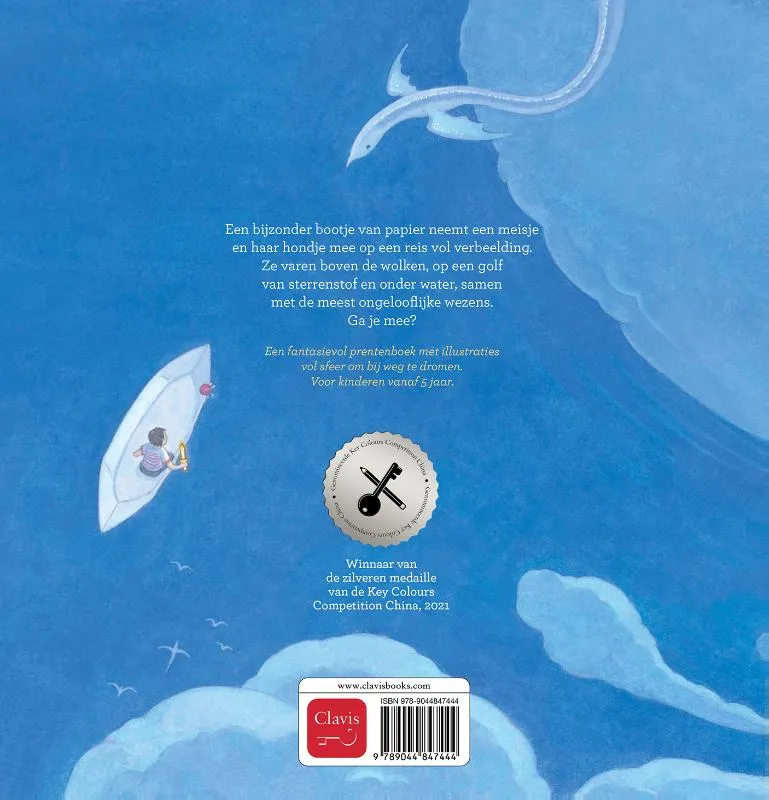 Een bijzonder bootje van papier neemt een meisje en haar hondje mee