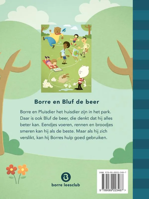 [vanaf 3 jaar] Borre en Pluisdier het huisdier zijn in het park. Daar is ook Bluf de beer, die denkt dat hij alles beter kan. Eendjes voeren, rennen en broodjes smeren kan hij als de beste. Maar als hij zich verslikt, kan hij Borres hulp goed gebruiken.