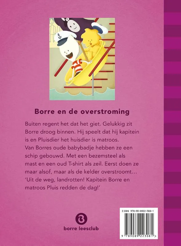 Vanaf 3 jaar. Buiten regent het. Gelukkig zit Borre droog binnen. Hij heeft van zijn oude babybadje een boot gebouwd. Borre speelt de kapitein en Pluisdier het huisdier is matroos. Maar als de kelder overstroomt, is het opeens geen spelen meer, maar helemaal echt!