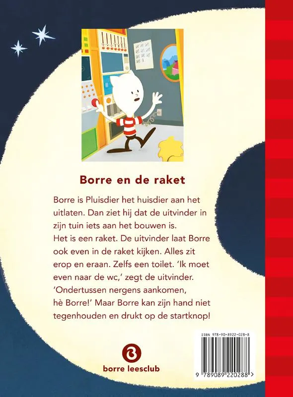 Vanaf 4 jaar. Zie je dat Borre een beetje bang kijkt? Dat komt omdat hij in een raket is gestapt en op een rode knop heeft gedrukt. De raket steeg toen op en nu vliegt Borre hoog boven de aarde en weet hij niet hoe hij weer terug moet komen. Lees hoe dat afloopt in ‘Borre en de raket’.