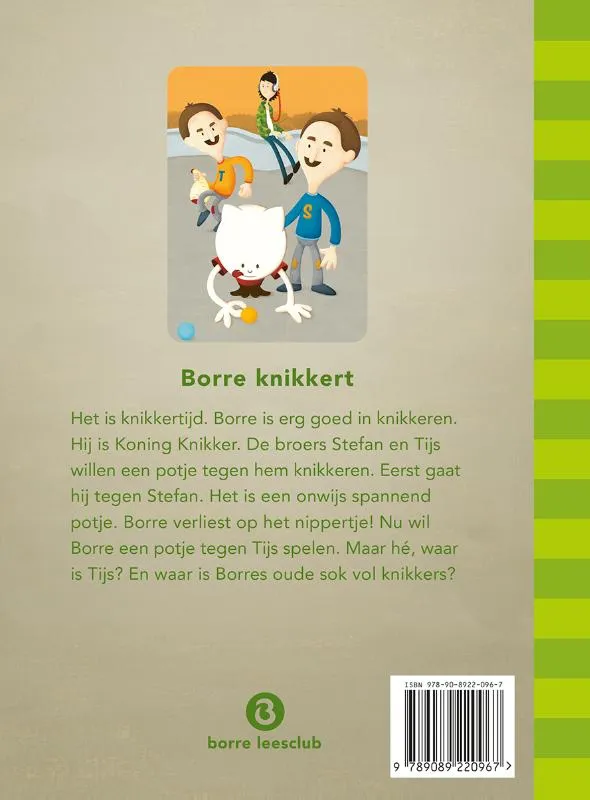 Vanaf 7 jaar. In ‘Borre knikkert’ leert Borre Elle kennen. Het is knikkertijd. Iedereen knikkert, behalve zij. De meeste kinderen vinden haar maar vreemd. Ze zijn een beetje bang voor haar. Maar dat maakt Elle niets uit. Ze heeft het toch te druk met muziek luisteren op haar koptelefoon. Als de tweeling Stefan en Tijs Borres knikkers stelen, komt hij erachter dat Elle eigenlijk heel erg tof is.