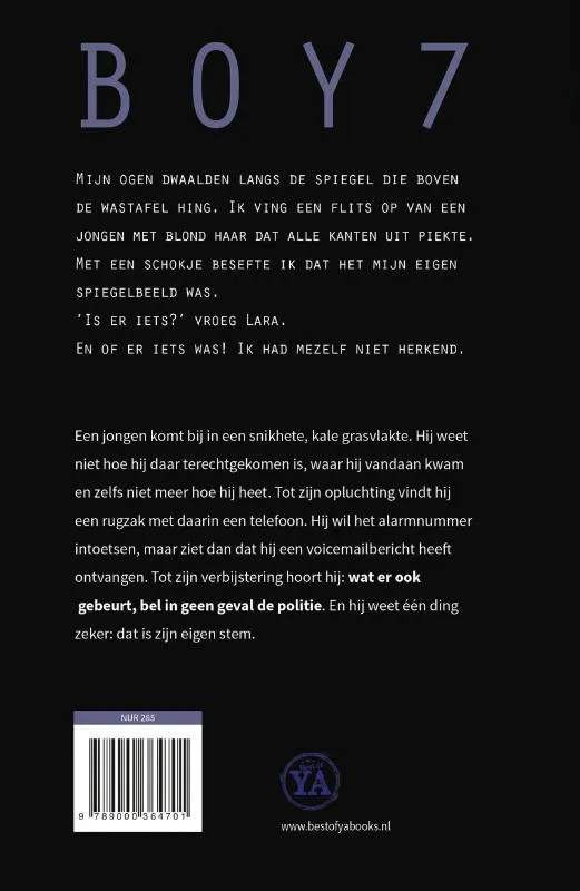Dubbel feest! Dit jaar vieren we dat Mirjam Mous al twintig jaar schrijver is. En dat er sinds de eerste druk maar liefst 100.000 exemplaren van haar thriller Boy 7 zijn verkocht! Genoeg reden voor een jubileumeditie van deze bestseller, met daarin een exclusief nawoord van Mirjam Mous!