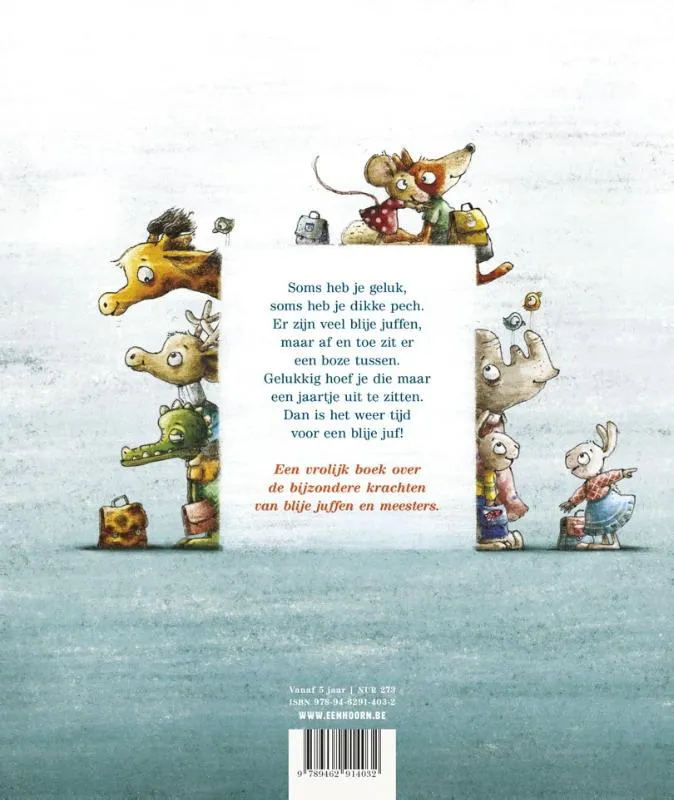 Als het nieuwe schooljaar begint heb je soms dikke pech. Want tussen een hoop blije juffen, zit er af en toe eens een boze juf. Boze juffen zijn niet geduldig, vrolijk of lief. Ze luisteren slecht en dromen doen ze enkel in hun slaap. Gelukkig hoef je een boze juf maar een jaartje uit te zitten. Dan is het weer tijd voor een blije juf!