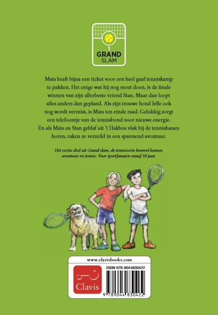 Mats heeft bijna een ticket voor een heel gaaf tenniskamp te pakken. Het enige wat hij nog moet doen, is de finale winnen van zijn allerbeste vriend Stan. Maar dan loopt alles anders dan gepland. Als zijn trouwe hond Jelle ook nog wordt vermist, is Mats ten einde raad. Gelukkig zorgt een telefoontje van de tennisbond voor nieuwe energie. En als Mats en Stan geblaf uit ’t Hakbos vlak bij de tennisbanen horen, raken ze verzeild in een spannend avontuur.Het eerste deel uit Grand slam, de tennisserie bomvol humor, avontuur en tennis. Voor sportfanaten vanaf 10 jaar.