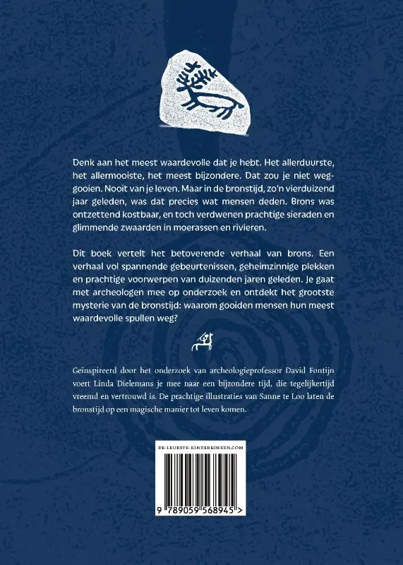 Dit boek vertelt het betoverende verhaal van brons. Een verhaal vol spannende gebeurtenissen, geheimzinnige plekken en prachtige voorwerpen van duizenden jaren geleden. Je gaat met archeologen mee op onderzoek en ontdekt het grootste mysterie van de bronstijd: waarom gooiden mensen hun meest waardevolle spullen weg?