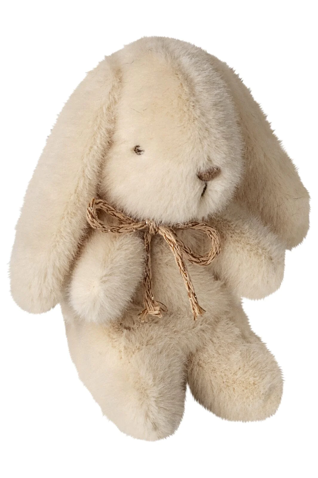 Een pluchen konijn van Maileg in een rauwwitte kleur. Het konijn heeft lange oren en geborduurde gelaatstrekken en is 13 cm hoog.