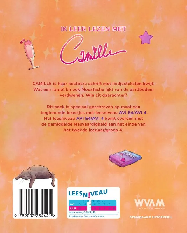 CAMILLE is haar kostbare schrift met liedjesteksten kwijt. Wat een ramp! En ook Moustache lijkt van de aardbodem verdwenen. Wie zit daar achter?Dit boek is speciaal geschreven op maat van beginnende lezertjes met leesniveau AVI E4/AVI 4.Het leesniveau AVI E4/AVI 4 komt overeen met de gemiddelde leesvaardigheid aan het einde van het tweede leerjaar/groep 4.