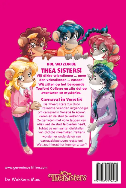 Met hun Venetiaanse vrienden Marco en Elisa storten ze zich in het feestgedruis; natuurlijk dragen ook de Thea Sisters prachtige kostuums! Er lijkt niets aan de poot tot iemand in het publiek een 18e-eeuwse waaier kwijtraakt. In plaats van de waaier vindt de knagerin een speelkaart in de zak van haar baljurk. Al snel blijkt dat er uit heel Venetië meldingen komen van vermiste maskers, waaiers en kostuums. Wie is de dief? De Thea Sisters en hun vrienden gaan op onderzoek uit!